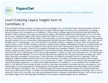 Love's Enduring Legacy: Insights from 1st Corinthians 13. (2024, May 21). Retrieved from https://hub.papersowl.com/examples/loves-enduring-legacy-insights-from-1st-corinthians-13/