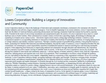 Lowes Corporation: Building a Legacy of Innovation and Community. (2023, Nov 24). Retrieved from https://hub.papersowl.com/examples/lowes-corporation-building-a-legacy-of-innovation-and-community/
