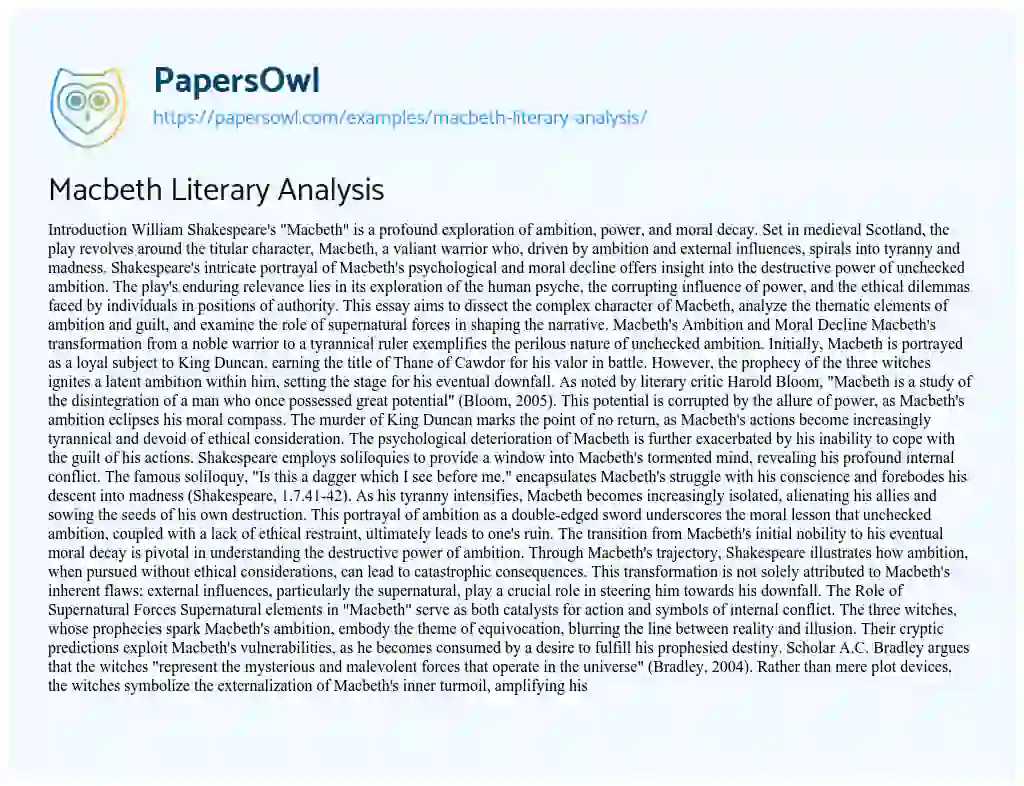 Macbeth Literary Analysis. (2024, Dec 27). Retrieved from https://hub.papersowl.com/examples/macbeth-literary-analysis/