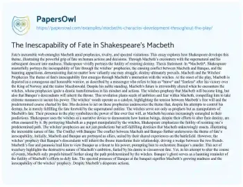 The Inescapability of Fate in Shakespeare's Macbeth. (2021, Apr 25). Retrieved from https://hub.papersowl.com/examples/macbeths-character-development-throughout-the-play/