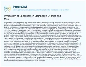 Symbolism of Loneliness in Steinbeck’s Of Mice and Men