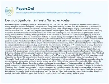 Decision Symbolism in Frosts Narrative Poetry. (2021, May 24). Retrieved from https://hub.papersowl.com/examples/making-choices-in-robert-frosts-poetry/