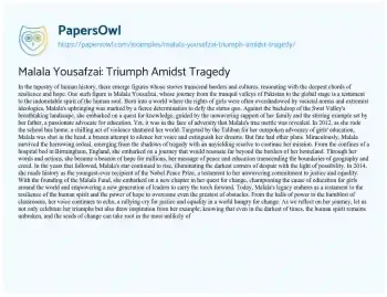 Malala Yousafzai: Triumph Amidst Tragedy. (2024, Mar 18). Retrieved from https://hub.papersowl.com/examples/malala-yousafzai-triumph-amidst-tragedy/