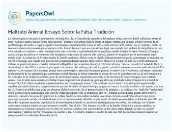 Maltrato Animal Ensayo Sobre la Falsa Tradición. (2026, Feb 06). Retrieved from https://hub.papersowl.com/examples/maltrato-animal-ensayo-sobre-la-falsa-tradicion/