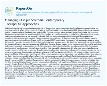 Managing Multiple Sclerosis: Contemporary Therapeutic Approaches. (2024, Mar 01). Retrieved from https://hub.papersowl.com/examples/managing-multiple-sclerosis-contemporary-therapeutic-approaches/