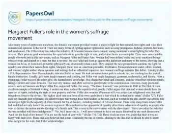 Margaret Fuller's role in the women's suffrage movement. (2022, Nov 17). Retrieved from https://hub.papersowl.com/examples/margaret-fullers-role-in-the-womens-suffrage-movement/
