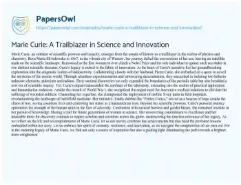 Marie Curie: A Trailblazer in Science and Innovation. (2024, Jun 01). Retrieved from https://hub.papersowl.com/examples/marie-curie-a-trailblazer-in-science-and-innovation/