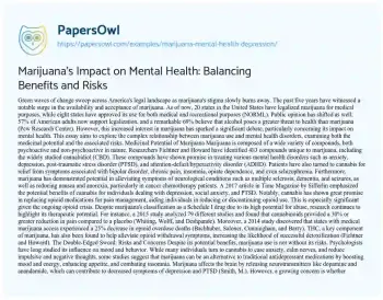 Marijuana's Impact on Mental Health: Balancing Benefits and Risks. (2021, Jun 17). Retrieved from https://hub.papersowl.com/examples/marijuana-mental-health-depression/