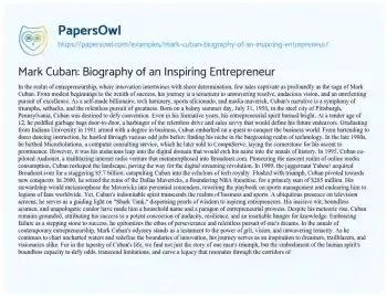 Mark Cuban: Biography of an Inspiring Entrepreneur. (2024, Apr 29). Retrieved from https://hub.papersowl.com/examples/mark-cuban-biography-of-an-inspiring-entrepreneur/