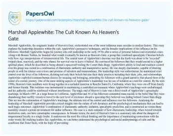 Marshall Applewhite: The Cult Known As Heaven's Gate. (2024, May 01). Retrieved from https://hub.papersowl.com/examples/marshall-applewhite-the-cult-known-as-heavens-gate/