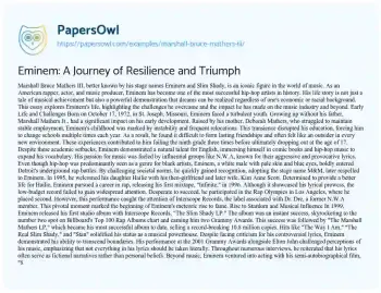 Eminem: A Journey of Resilience and Triumph. (2020, Mar 19). Retrieved from https://hub.papersowl.com/examples/marshall-bruce-mathers-iii/
