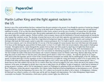 Martin Luther King and the fight against racism in the US. (2019, Jun 26). Retrieved from https://hub.papersowl.com/examples/martin-luther-king-and-the-fight-against-racism-in-the-us/