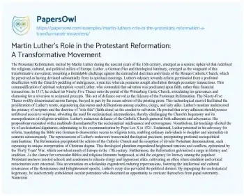 Martin Luther's Role in the Protestant Reformation: A Transformative Movement. (2024, Jun 01). Retrieved from https://hub.papersowl.com/examples/martin-luthers-role-in-the-protestant-reformation-a-transformative-movement/