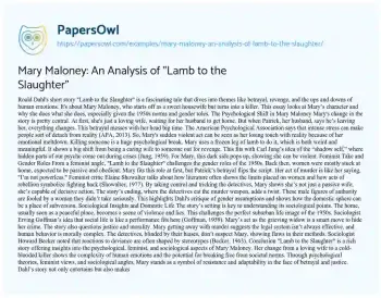 Mary Maloney: An Analysis of "Lamb to the Slaughter". (2024, Sep 17). Retrieved from https://hub.papersowl.com/examples/mary-maloney-an-analysis-of-lamb-to-the-slaughter/