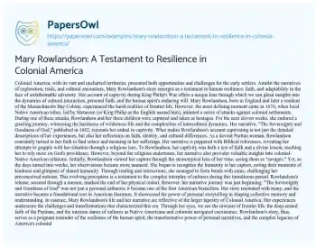 Mary Rowlandson: A Testament to Resilience in Colonial America. (2023, Oct 16). Retrieved from https://hub.papersowl.com/examples/mary-rowlandson-a-testament-to-resilience-in-colonial-america/
