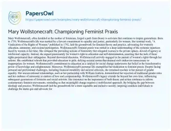 Mary Wollstonecraft: Championing Feminist Praxis. (2024, Mar 18). Retrieved from https://hub.papersowl.com/examples/mary-wollstonecraft-championing-feminist-praxis/
