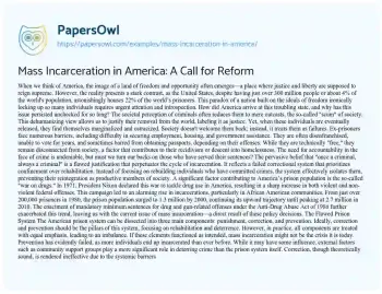 Mass Incarceration in America: A Call for Reform. (2019, Oct 23). Retrieved from https://hub.papersowl.com/examples/mass-incarceration-in-america/