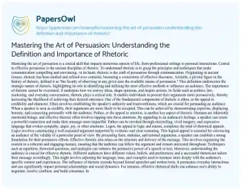 Mastering the Art of Persuasion: Understanding the Definition and Importance of Rhetoric. (2024, Jun 17). Retrieved from https://hub.papersowl.com/examples/mastering-the-art-of-persuasion-understanding-the-definition-and-importance-of-rhetoric/