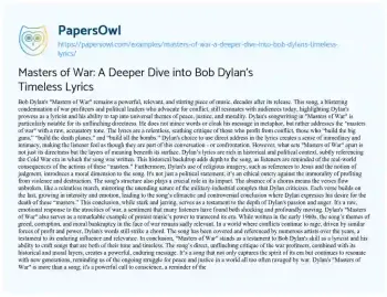 Masters of War: A Deeper Dive into Bob Dylan's Timeless Lyrics. (2023, Dec 01). Retrieved from https://hub.papersowl.com/examples/masters-of-war-a-deeper-dive-into-bob-dylans-timeless-lyrics/