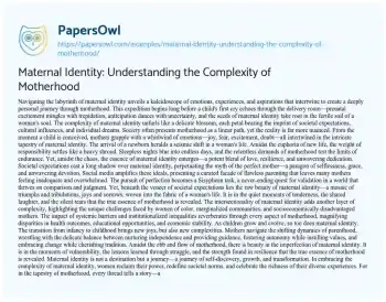 Maternal Identity: Understanding the Complexity of Motherhood. (2024, Mar 18). Retrieved from https://hub.papersowl.com/examples/maternal-identity-understanding-the-complexity-of-motherhood/