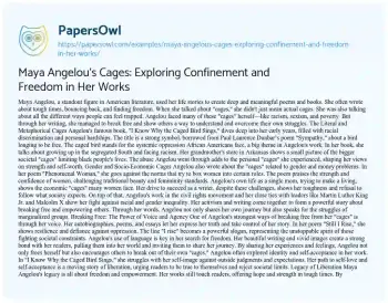 Maya Angelou's Cages: Exploring Confinement and Freedom in Her Works. (2024, Sep 17). Retrieved from https://hub.papersowl.com/examples/maya-angelous-cages-exploring-confinement-and-freedom-in-her-works/