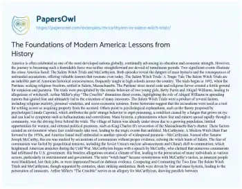 The Foundations of Modern America: Lessons from History. (2021, Apr 19). Retrieved from https://hub.papersowl.com/examples/mccarthyism-vs-salem-witch-trials/
