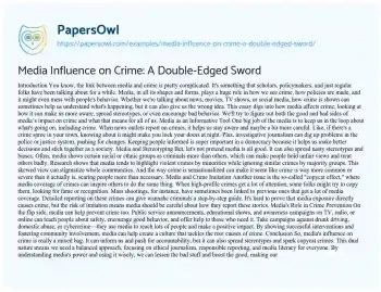 Media Influence on Crime: A Double-Edged Sword. (2024, Sep 17). Retrieved from https://hub.papersowl.com/examples/media-influence-on-crime-a-double-edged-sword/