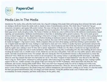 Media Lies In The Media. (2024, Sep 17). Retrieved from https://hub.papersowl.com/examples/media-lies-in-the-media/