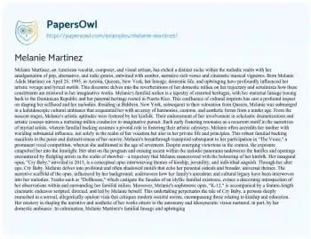 Melanie Martinez. (2024, Apr 29). Retrieved from https://hub.papersowl.com/examples/melanie-martinez/