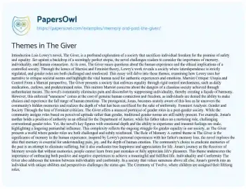Themes in The Giver. (2021, Mar 19). Retrieved from https://hub.papersowl.com/examples/memory-and-past-the-giver/