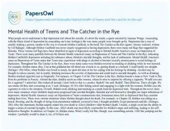Mental Health of Teens and The Catcher in the Rye. (2019, Feb 04). Retrieved from https://hub.papersowl.com/examples/mental-health-of-teens-and-the-catcher-in-the-rye/
