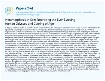 Metamorphosis of Self: Embracing the Ever-Evolving Human Odyssey and Coming of Age. (2024, Mar 12). Retrieved from https://hub.papersowl.com/examples/metamorphosis-of-self-embracing-the-ever-evolving-human-odyssey-and-coming-of-age/