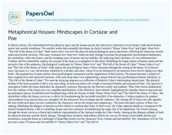 Metaphorical Houses: Mindscapes in Cortázar and Poe. (2025, Mar 29). Retrieved from https://hub.papersowl.com/examples/metaphorical-houses-mindscapes-in-cortazar-and-poe/