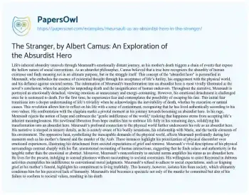 The Stranger, by Albert Camus: An Exploration of the Absurdist Hero