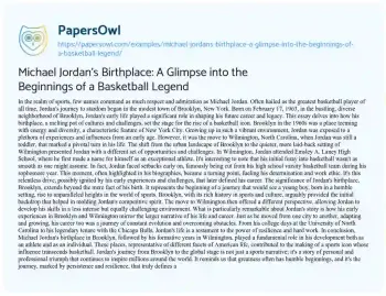 This essay explores the early beginnings of Michael Jordan, the legendary basketball player, focusing on his birthplace in Brooklyn, New York, and his subsequent move to Wilmington, North Carolina. It delves into how these places played a crucial role in shaping Jordan’s character and career. Highlighting Brooklyn’s vibrant and diverse environment, the essay reflects on how this backdrop contributed to Jordan’s competitive spirit. The narrative then shifts to Wilmington, where Jordan faced significant challenges, including being cut from his high school basketball team, an event that fueled his determination and work ethic. This piece not only traces Jordan’s journey from a young boy in Brooklyn to a global sports icon but also examines how his early life experiences mirrored the resilience and evolution seen throughout his career. It’s a story that encapsulates the essence of personal and professional triumph, illustrating how greatness can emerge from humble beginnings and be shaped by the journey of overcoming obstacles. At PapersOwl too, you can discover numerous free essay illustrations related to Basketball.