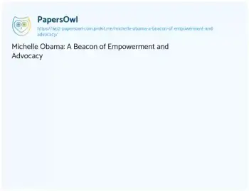 Michelle Obama: A Beacon of Empowerment and Advocacy. (2024, Mar 01). Retrieved from https://hub.papersowl.com/examples/michelle-obama-a-beacon-of-empowerment-and-advocacy/