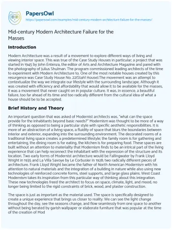 Mid-century Modern Architecture Failure for the Masses. (2021, Oct 15). Retrieved from https://hub.papersowl.com/examples/mid-century-modern-architecture-failure-for-the-masses/