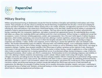 Military Bearing. (2025, Mar 31). Retrieved from https://hub.papersowl.com/examples/military-bearing/