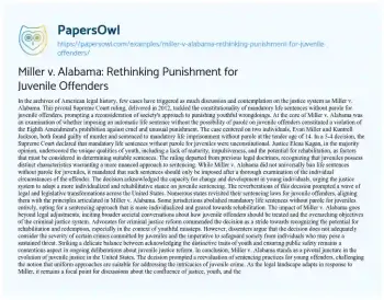 Miller v. Alabama: Rethinking Punishment for Juvenile Offenders. (2023, Nov 24). Retrieved from https://hub.papersowl.com/examples/miller-v-alabama-rethinking-punishment-for-juvenile-offenders/