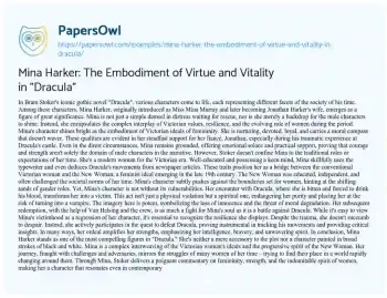 Mina Harker: The Embodiment of Virtue and Vitality in "Dracula". (2023, Oct 16). Retrieved from https://hub.papersowl.com/examples/mina-harker-the-embodiment-of-virtue-and-vitality-in-dracula/