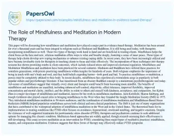 The Role of Mindfulness and Meditation in Modern Therapy. (2020, Apr 19). Retrieved from https://hub.papersowl.com/examples/mindfulness-and-mediation-in-evidence-based-therapy/
