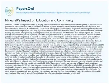 Minecraft's Impact on Education and Community. (2025, Mar 29). Retrieved from https://hub.papersowl.com/examples/minecrafts-impact-on-education-and-community/