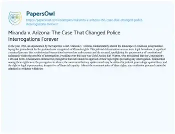 Miranda v. Arizona: The Case That Changed Police Interrogations Forever. (2024, Feb 27). Retrieved from https://hub.papersowl.com/examples/miranda-v-arizona-the-case-that-changed-police-interrogations-forever/