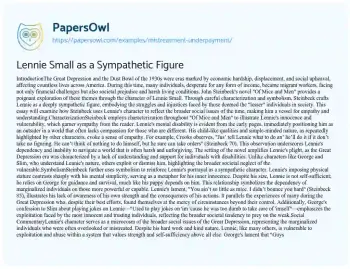 Lennie Small as a Sympathetic Figure. (2020, Mar 25). Retrieved from https://hub.papersowl.com/examples/mistreatment-underpayment/