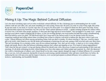 Mixing it Up: The Magic Behind Cultural Diffusion. (2024, Feb 27). Retrieved from https://hub.papersowl.com/examples/mixing-it-up-the-magic-behind-cultural-diffusion/