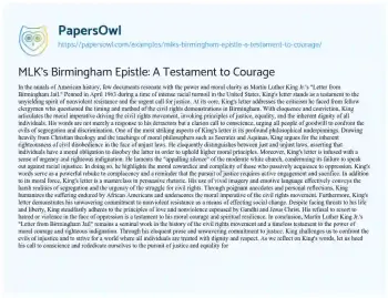 MLK's Birmingham Epistle: A Testament to Courage. (2024, Feb 27). Retrieved from https://hub.papersowl.com/examples/mlks-birmingham-epistle-a-testament-to-courage/