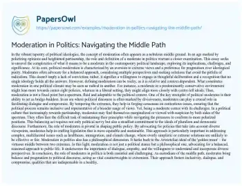 Concluding that moderation is essential for a healthy democracy, the essay asserts that the balanced voice of moderates is vital in countering extremism and guiding societies towards more thoughtful and inclusive political solutions. PapersOwl offers a variety of free essay examples on the topic of Politics.