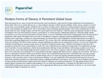 Modern Forms of Slavery: A Persistent Global Issue. (2024, May 12). Retrieved from https://hub.papersowl.com/examples/modern-forms-of-slavery-a-persistent-global-issue/