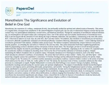 Monotheism: The Significance and Evolution of Belief in One God. (2024, May 12). Retrieved from https://hub.papersowl.com/examples/monotheism-the-significance-and-evolution-of-belief-in-one-god/