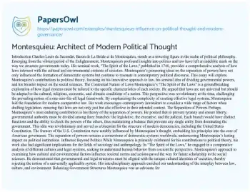 Montesquieu: Architect of Modern Political Thought. (2024, Jul 06). Retrieved from https://hub.papersowl.com/examples/montesquieus-influence-on-political-thought-and-modern-governance/